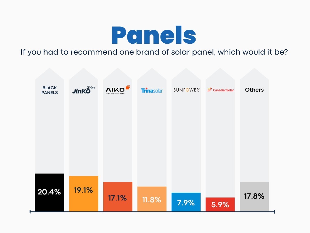 According to the survey, installer preferences for solar panels are relatively diverse compared to other solar components.